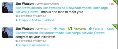 The Mayor made a point of stopping by to chat with Skyreader at the Invest Ottawa launch. (post from the Skyreader site)
